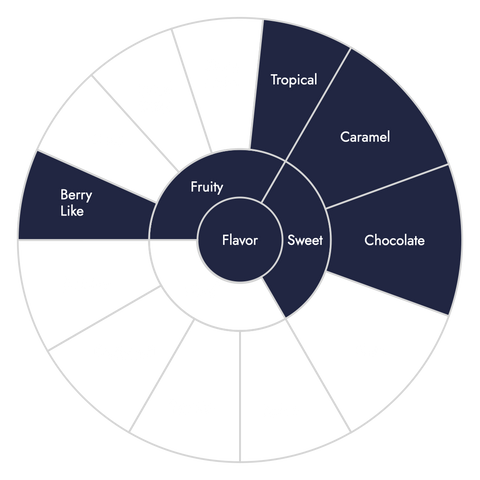 The flavor wheel is a visual tool that helps to better understand and name flavors in coffee. This wheel contains six main categories common in specialty coffee.