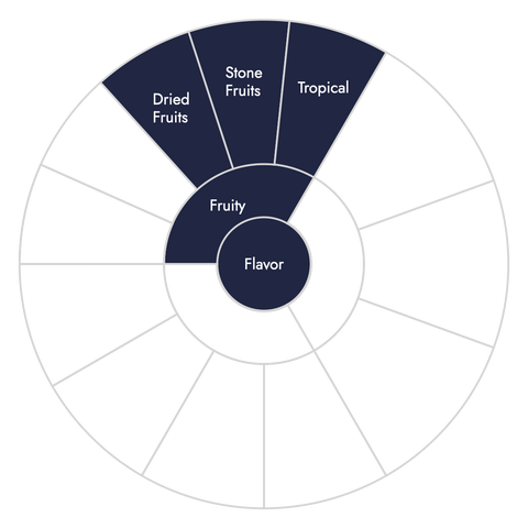 The flavor wheel is a visual tool that helps to better understand and name flavors in coffee. This wheel contains six main categories common in specialty coffee.